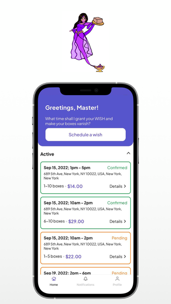Box Jeannie Customer är en app som erbjuder en praktisk lösning för att hantera oönskade inköp och överflödiga lådor. Användare kan enkelt schemalägga hämtningar av sina föremål utan att behöva bry sig om att packa ner dem. Tjänsten är tillgänglig genom en användarvänlig plattform där man kan boka enstaka uppdrag eller registrera sig för en månadsprenumeration. Appen möjliggör även direktkommunikation med chauffören, vilket gör processen smidig och effektiv.